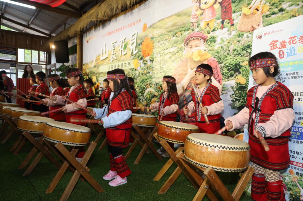 ▲新竹縣尖石鄉可愛的小朋友們於今日活動說明會現場帶來精彩的擊鼓演出。(圖/竹縣府提供)