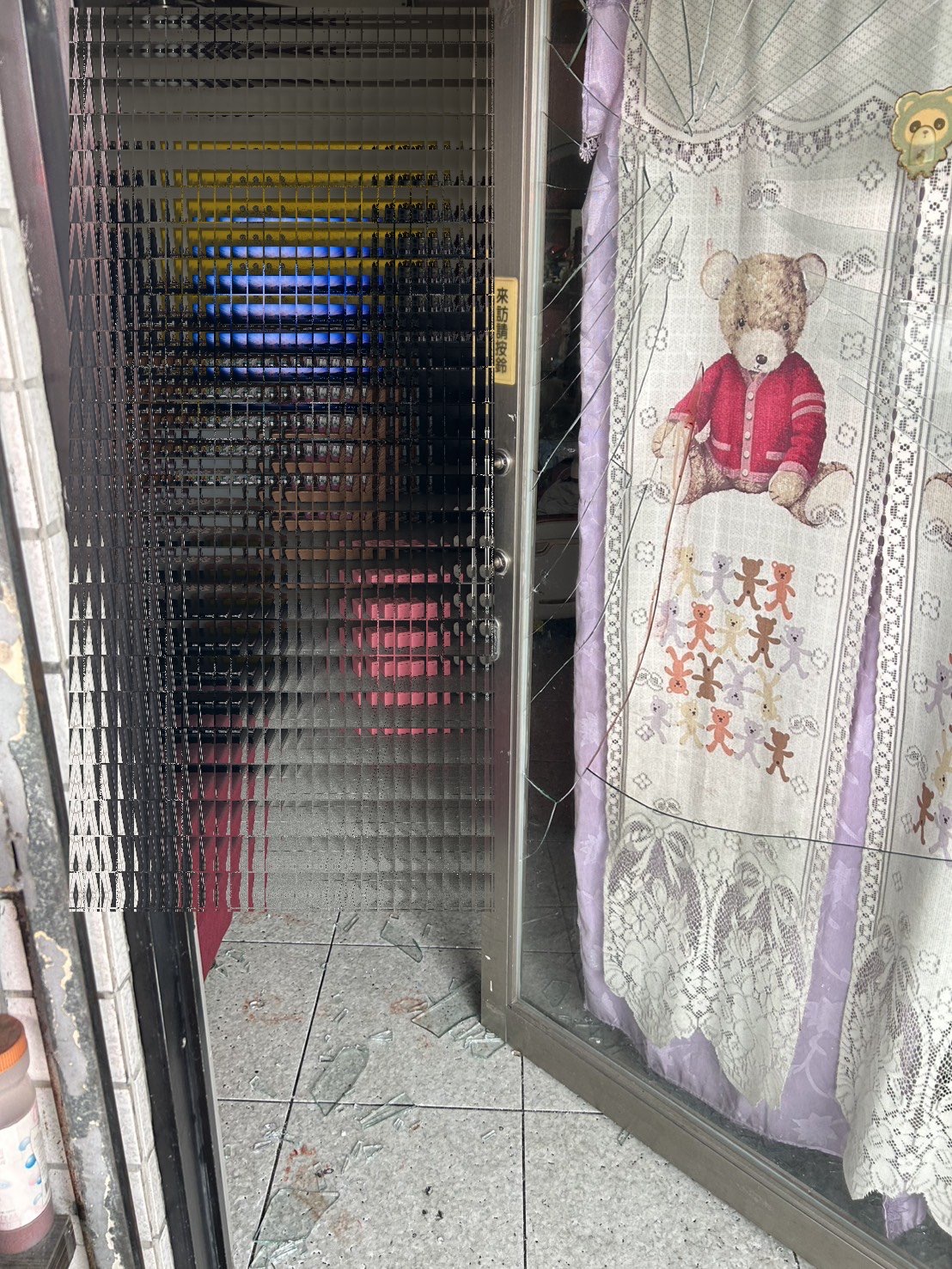 大門玻璃撞破碎片落地。翻攝畫面