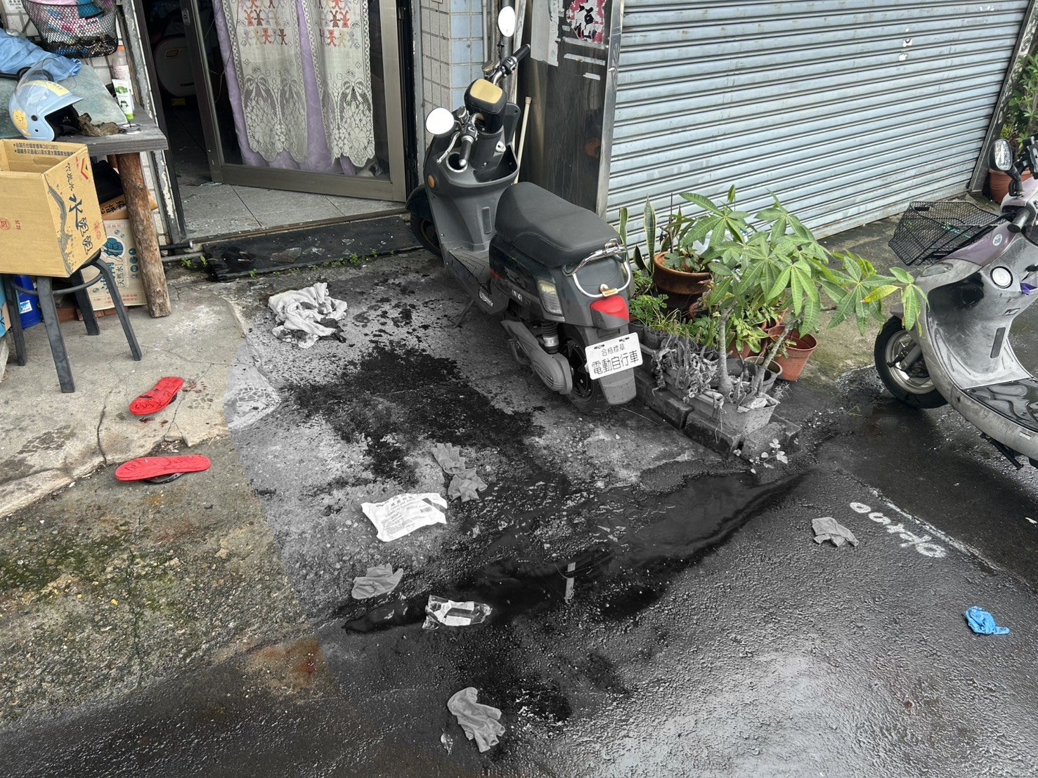 男子撞破自家玻璃大門住家前血流滿地(變色處理)。翻攝畫面