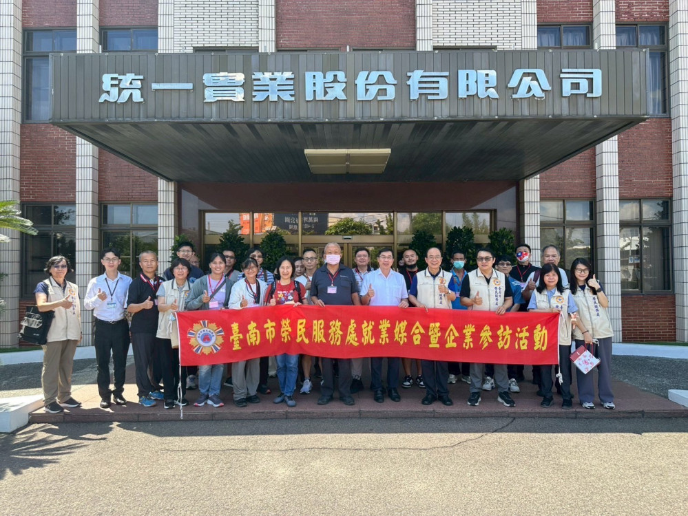 【勁報記者于郁金/臺南報導】為輔導退除役官兵及眷屬順利接軌職場,及協助缺工產業招募勞動力,臺南市榮民服務處與統一實業公司於日前辦理「企業參訪暨現地徵才活動」,採單一企業實地參訪模式,結合現場徵才,建立退除役官兵與眷屬專屬就業媒合平台,由人力資源部孫金鎮經理、王惠絨課長及底片廠總廠長魏壽山經理熱情接待,此次活動有20人參加,讓雇主與求職者面對面,協助求職者找到適合自己優質工作。