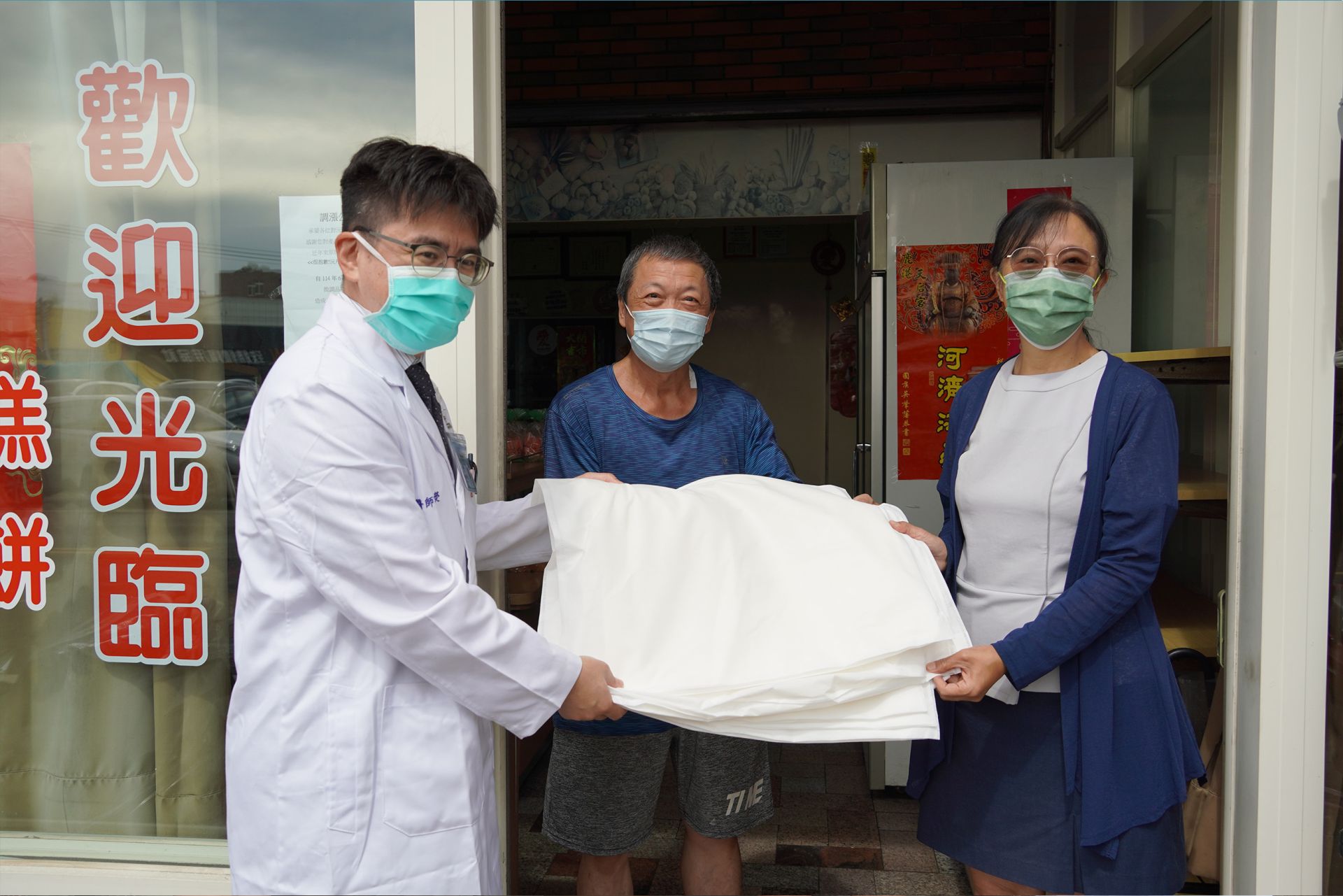 圖說:颱風來襲前夕 鹿基醫院階贈科技沙包給易淹水的鄰居