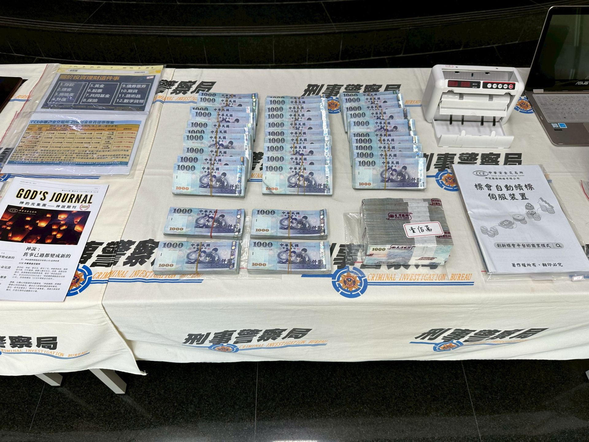 打詐預警中心通報,黃鈺雯檢察官立即指揮重案支援中心檢察事務官、調查局中部地區機動工作站、彰化縣調查站、刑事警察局中部打擊犯罪中心、台中市警六分局、新北市刑警大隊、桃園市刑警大隊、高雄市刑警大隊、台南市刑警察大隊、新竹縣刑警大隊、南投縣南投分局、彰化縣員林分局、台東縣台東分局及宜蘭縣羅東分局等單位組成專案小組,破獲神說公司架設非法投資標會平臺對外吸金、詐騙投資人,以「CCE中華資金交易所」之P2P標會平臺公開招募民眾投資,自110年間起在全台各地辦理公開投資說明會,宣稱:1會金額為56萬元、61萬元或76萬元,8年後保證補足200萬,投資款項不足額由公司代墊等話術,並以後金補前金之手法,換算年化報酬率為32.14%至188.39%不等之顯不相當利息,吸引廣大民眾投入資金,吸金達45億餘元。