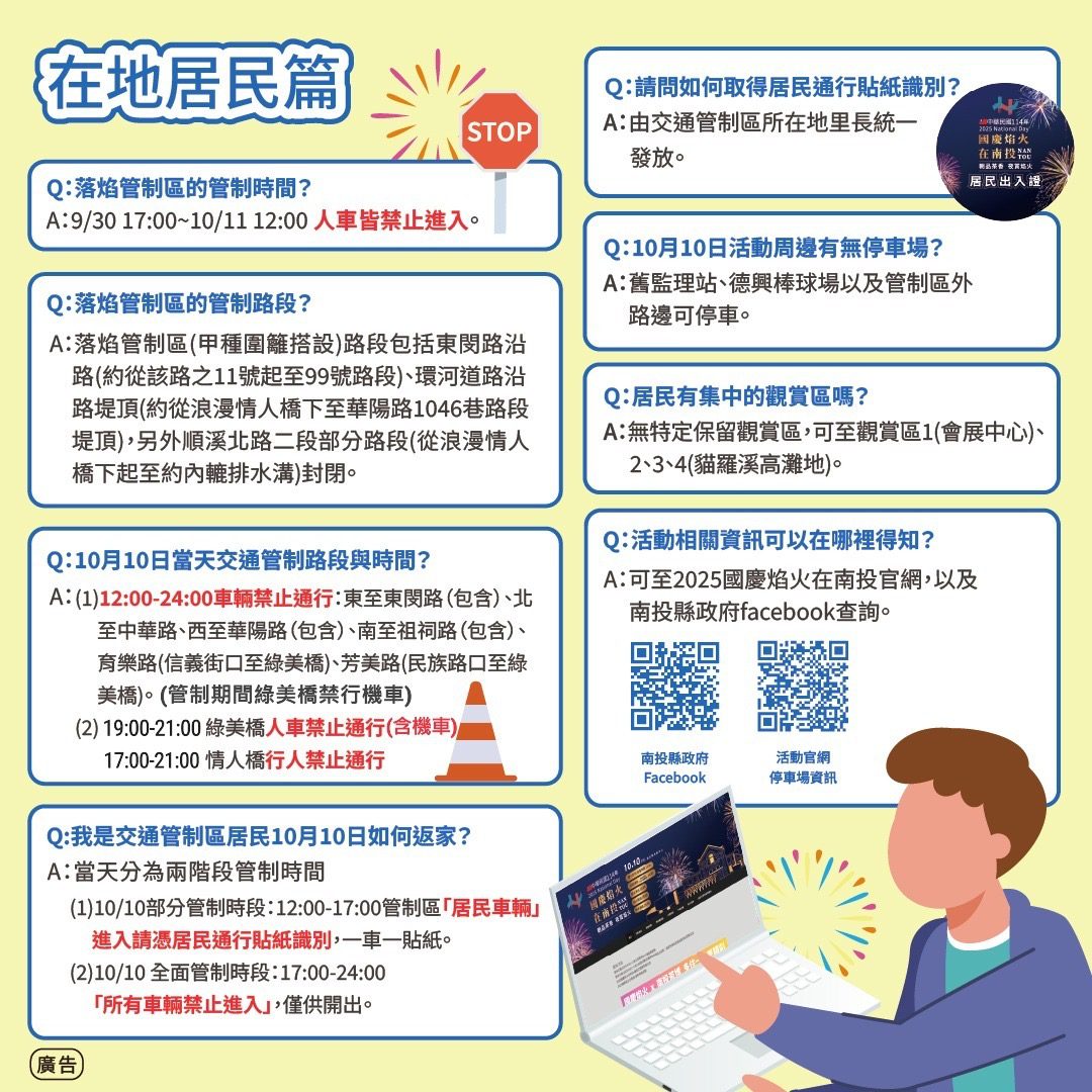 此篇文章最開始出處為: 南投國慶焰火交通管制提醒 共同迎接璀璨國慶