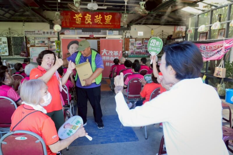 貼近長輩、深入社區,座談現場氣氛熱絡,不時傳出笑聲,里民紛紛上前為林岱樺加油打氣,顯見她在社區中的高人氣。