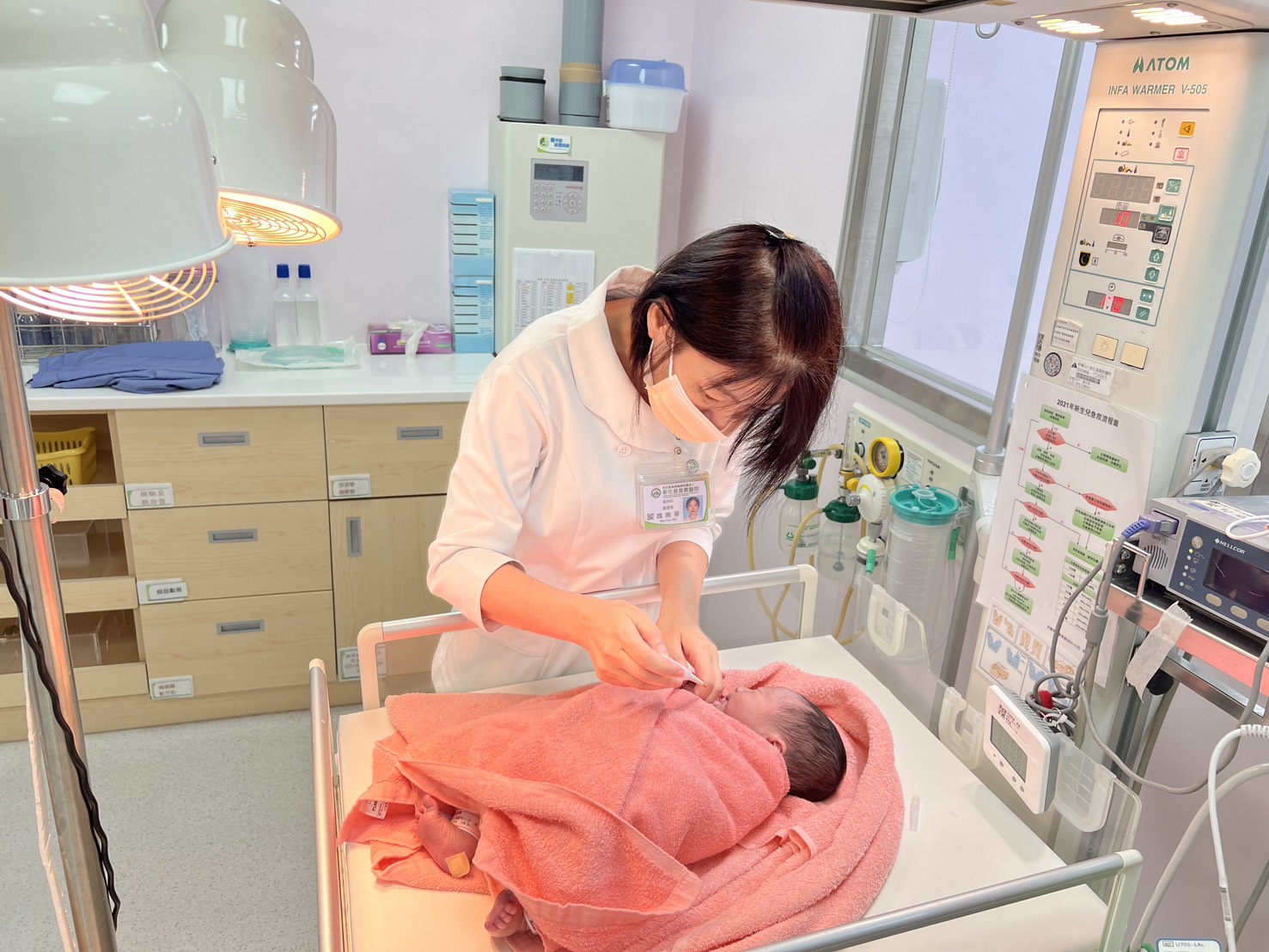 圖說:國慶寶寶報到 彰基產科護理師細心的照護 並為國慶寶寶的父母祝賀