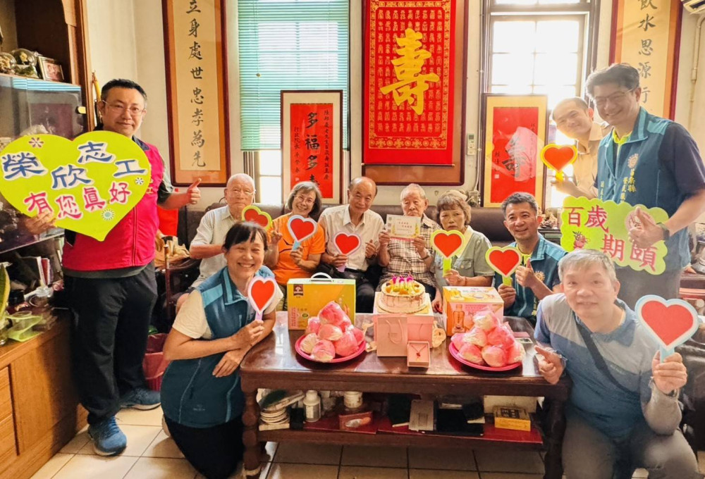 榮服處說明,陳爺爺為陸軍准尉退役,由女兒及女婿細心照料,雖已至期頤之年,仍精神奕奕,偶爾還能至關懷據點上課;此次百歲大壽由女兒、女婿、姪子陪伴慶生,心情特別愉悅。