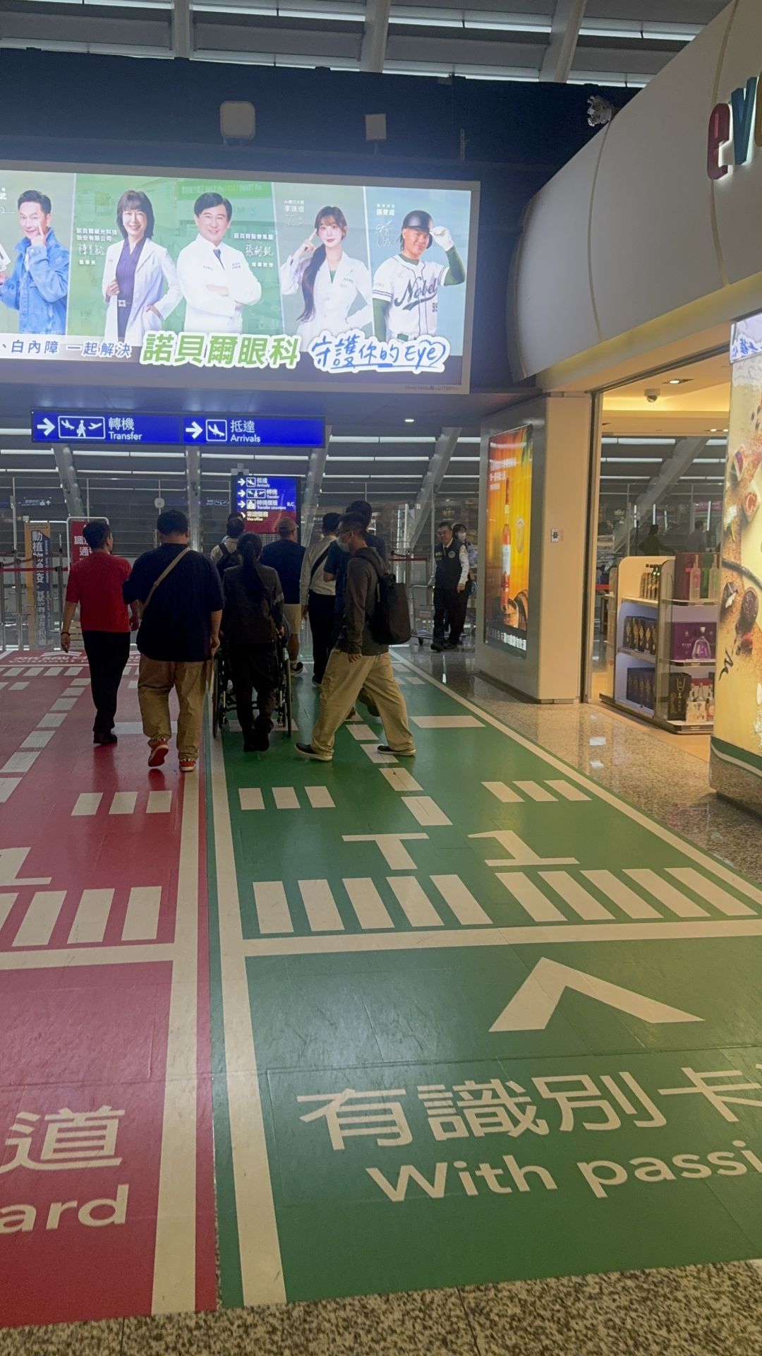 散佈總統蕭美琴演講不實訊的陳姓男子(坐輪椅),從日本返台隨即被警方帶回偵訊。翻攝畫面
