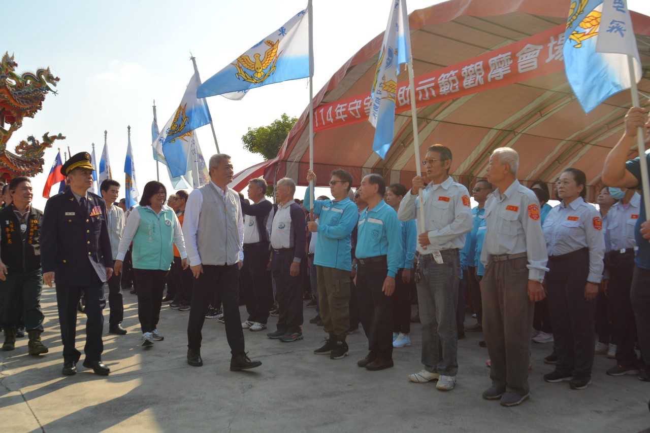 嘉義市政府7日在西區玉山路1013號(頭港真武宮)前廣場,由頭港里守望相助隊辦理114年度示範觀摩活動,東、西區守望相助隊計10隊參加,副市長林瑞彥親自主持校閱,並頒獎表揚各隊績優人員包含頭港里守望相助隊副隊長楊欽昌等16人。