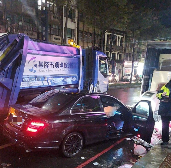 基隆市環保局垃圾車也被撞。翻攝畫面