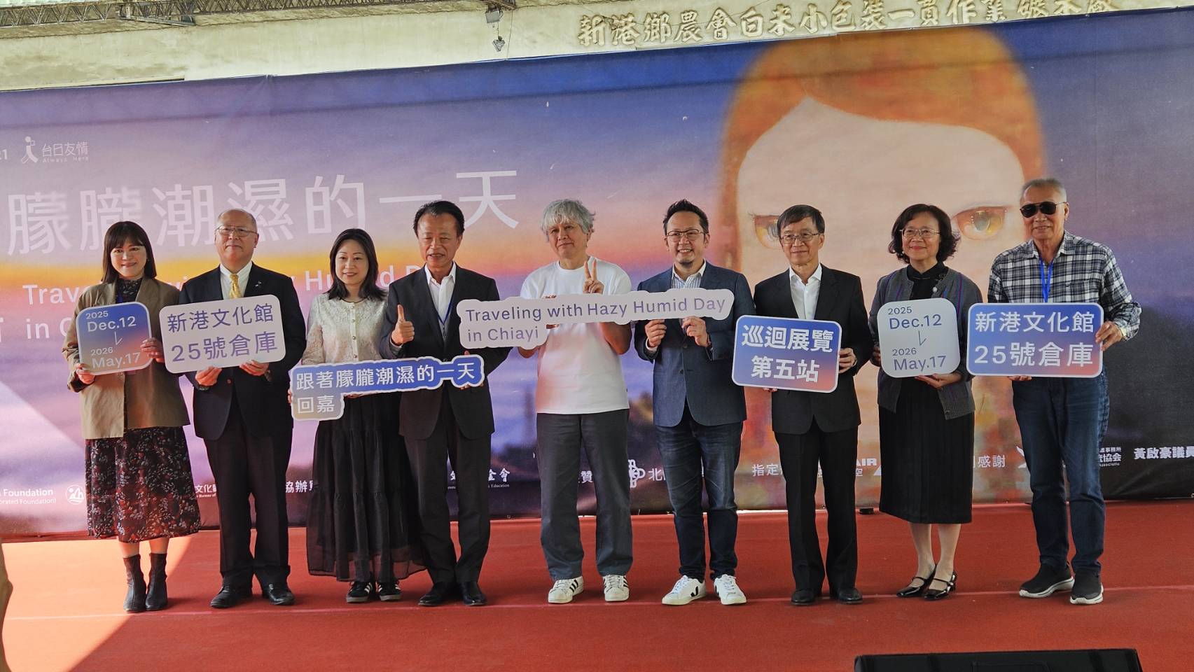日本當代藝術家奈良美智與台灣再次相遇。由文化總會、奈良美智基金會、嘉義縣政府與嘉義縣文化觀光局共同主辦的巡展「跟著朦朧潮濕的一天回嘉」,今日(12 日)正式在嘉義縣新港文化館 25 號倉庫啟動。開幕記者會吸引多位重量級來賓,包括奈良美智本人、嘉義縣長翁章梁、日本台灣交流協會高雄事務所所長奧正史,以及本次展覽獨家贊助者──北回化學董事長陳芳斌。
