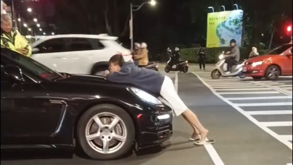【Lai傳媒、記者爆料網/莫沛宇/新北報導】新北市板橋區昨(15)日晚間發生1起令人匪夷所思的脫序行為。1名男子無視交通號誌,闖紅燈穿越馬路後,擋下1輛行駛中的保時捷,隨後更直接趴上保時捷的引擎蓋,做出不斷抖動下體狂頂車頭的詭異動作,時間長達數分鐘。警方獲報趕抵現場時,該名男子已離去。由於其行為已涉嫌妨害交通及公共安全,板橋警方將調閱監視器追查男子身分,並將依公共危險罪嫌偵辦。