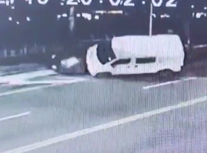 休旅車自撞側翻。翻攝畫面