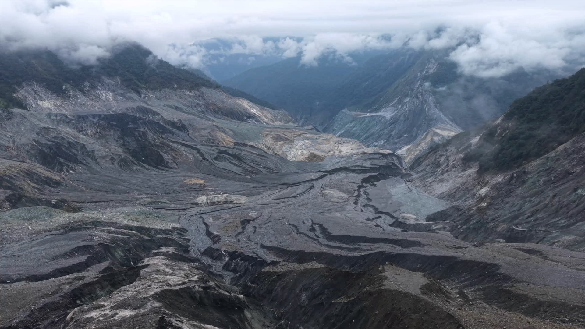公視《我們的島》團隊拍攝崩落的碎石與高聳堆積的土砂交錯 照片提供:公共電視