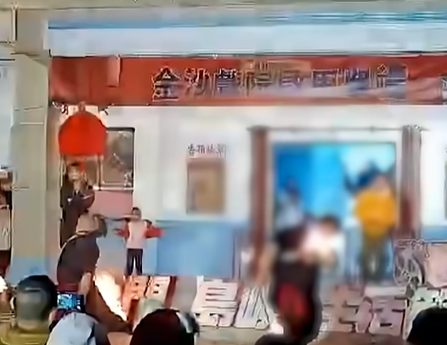 當晚火舞團進行噴火特技演出,畫面中可見其中一名舞者完成噴火動作後,疑似受到風向影響或操作失誤,火焰突然「回燃」,瞬間竄向臉部與頭部。舞者當場倒地遮臉,工作人員立刻衝上前協助滅火救援,現場驚呼聲此起彼落,主持人也緊急中斷活動。