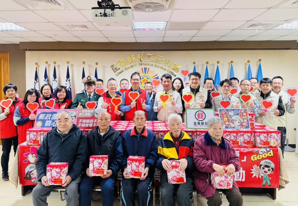 【大成報/苗栗報導】為關懷榮民(眷)春節生活所需,傳遞社會溫暖與祝福,苗栗縣榮民服務處日前誠摯感謝苗栗郵局發揮企業社會責任,吳振斌局長率領梁興文副局長等一行,蒞處舉辦115年「郵心相連、傳愛永續」關懷獨居長者公益活動,慷慨捐贈春節禮盒100份,實際行動支持榮民(眷)照顧服務,由苗栗縣榮服處陳立中處長偕同柯長榮副處長、王國良總幹事及服務團隊代表受贈,並致贈感謝狀。
