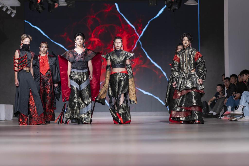 活動由大四學生歐心渝與温詩怡擔綱主持,從腳本擬定到現場節奏掌控表現大方得體;更難能可貴的是,整場展演從服飾配件製作、音樂影像設計、伸展台走位策劃,到整體彩妝髮型製作,皆由全系學生跨年級協作,今年特別亮點為「產學攜手合作專班」大四生也首度共同參與展演,並製作精彩表演節目,不僅展現多元教學成果,也充分驗證學生專業執行力。