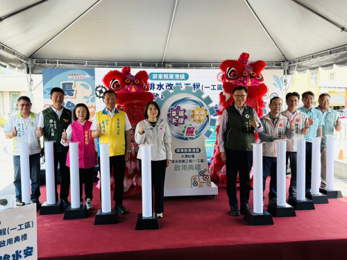 為改善大潭社區積淹水問題,屏東縣政府於112年底進行「大潭排水改善工程」。今(19)日舉辦第一工區完工啟用典禮,由縣長周春米出席主持,立法委員徐富癸、各級地方民代與鄉親共同見證建設成果。周縣長表示,第一工區完工後有效改善大潭社區積淹水問題,讓鄉親安居樂業,享受更好的生活品質。