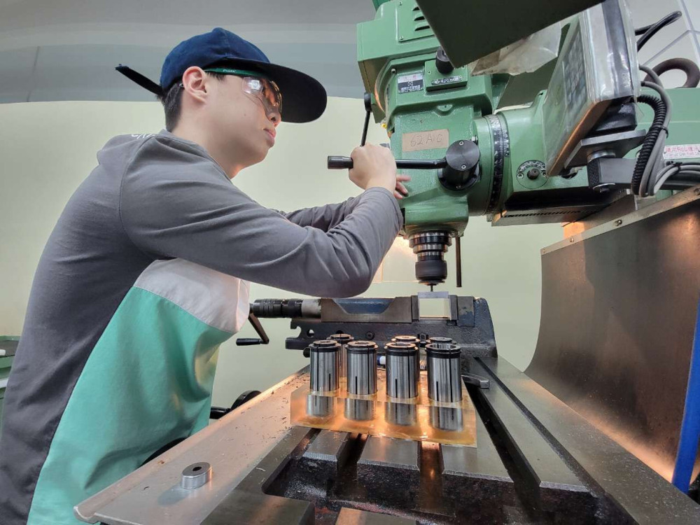 對吳建霖而言,技術不只是競賽、更是一種家族傳承。從祖父開始家中即投入模具產業,他自小便利用假日到工廠幫忙,從鑽孔等基礎工作接觸機械加工。目前吳建霖就讀中彰投分署與國立勤益科技大學合作開辦的「工具機與精密模具設計製造專班」,大一在分署接受系統化職業訓練,持續精進電腦繪圖與CNC銑床加工技術。