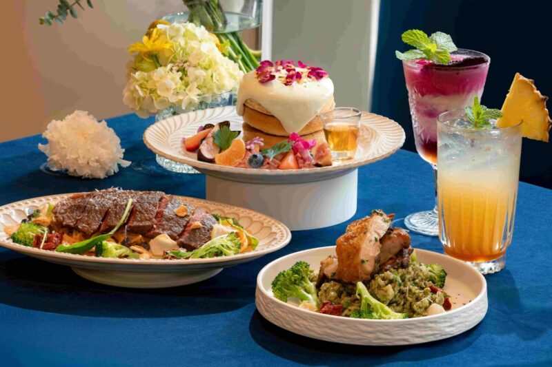 主食部分同樣展現細膩工藝,「羅勒燒烤雞腿燉飯」以青醬慢火燉煮,米粒吸附濃郁香氣,結合外酥內嫩的雞腿排,層次分明;「旭日番茄燒烤牛排義大利麵」則以嫩煎牛排融合番茄奶油醬,香氣濃厚、口感飽滿,搭配特調飲品,完整呈現一場從鹹食到甜點的味蕾旅程。