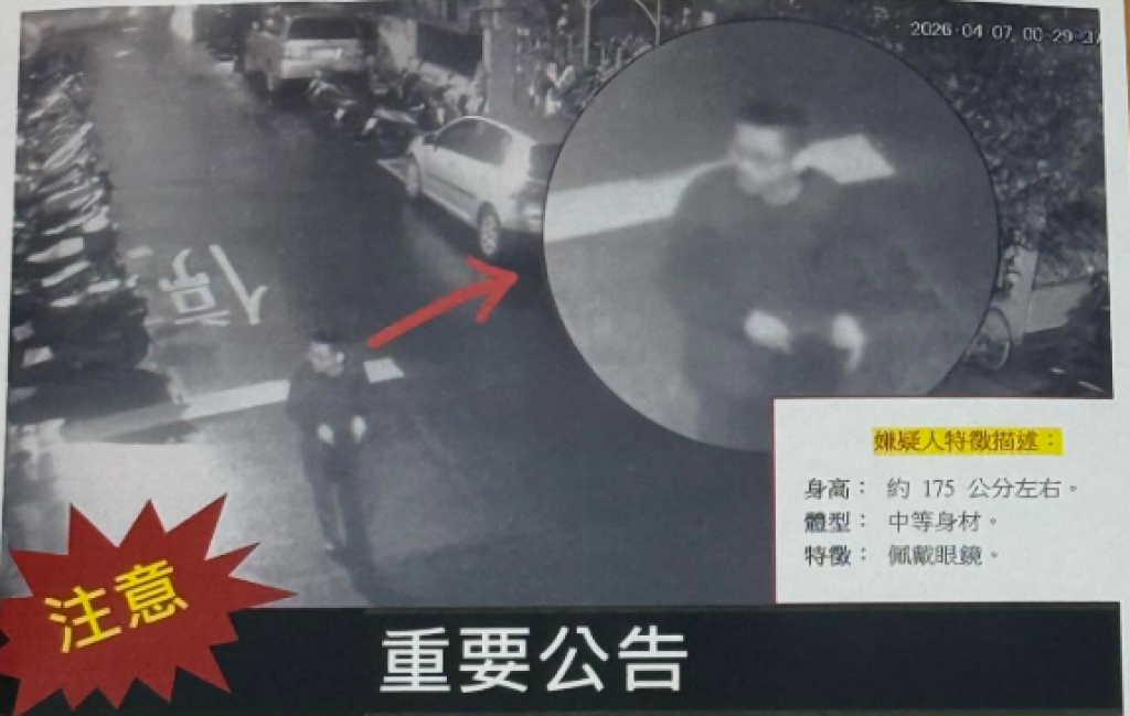 監視器全程拍下他左顧右盼、確認無人後戴上頭套埋伏,以及被發現後落荒而逃的畫面,目前已報警並正式提告,絕對追究到底!