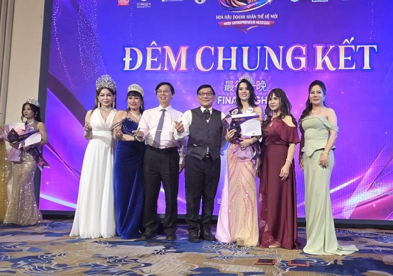 ▲首屆新住民企業家選美大賽活動中,理事長張晉為獲獎佳麗頒獎。(圖/記者范文濱攝)