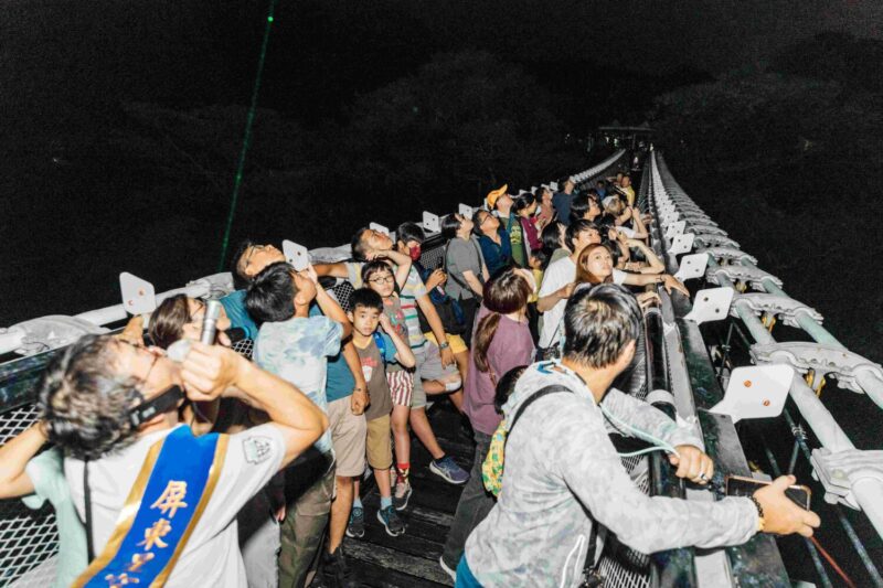 為營造最佳觀星條件,縣府特別於深夜時段開放平時管制 的山川琉璃吊橋。在幾近零光害的環境中,民眾漫步橋上,耳 邊是山林蟲鳴,抬頭即是滿天星斗。不少人直呼:「白天的吊 橋壯觀,夜晚則是夢幻,星空彷彿觸手可及,這是只有在屏東 才有的浪漫。」