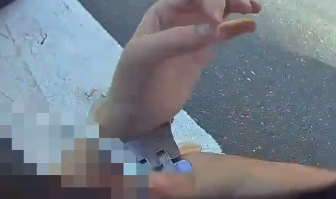 警方將婦人上銬管束。翻攝畫面