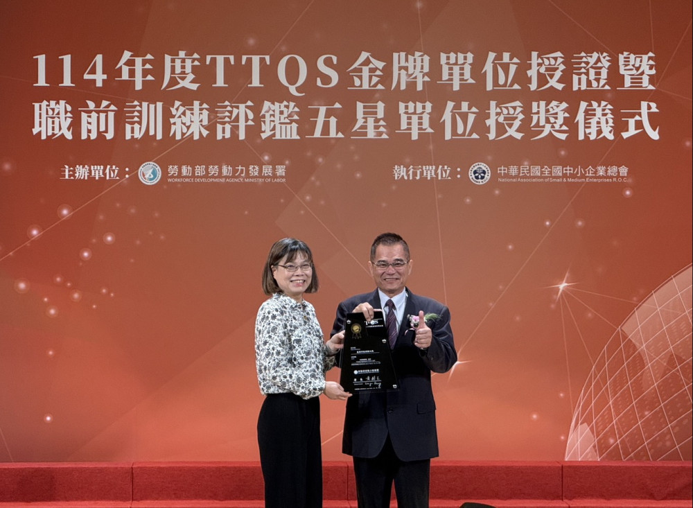 勞動部 勞動力發展署施淑惠副署長表示,TTQS評核制度推動至今已邁入第19年,114年約有1,847家企業及訓練機構參與評核,僅11家榮獲金牌,得獎率約0.5%,相當不易,也感謝大家努力不懈推動職業訓練,面對半導體、AI及淨零碳排等產業發展趨勢,人才需求持續攀升,需仰賴政府與訓練單位攜手培育產業所需人才,並透過公開表揚機制,鼓勵各界精進培訓品質,與國際趨勢接軌。