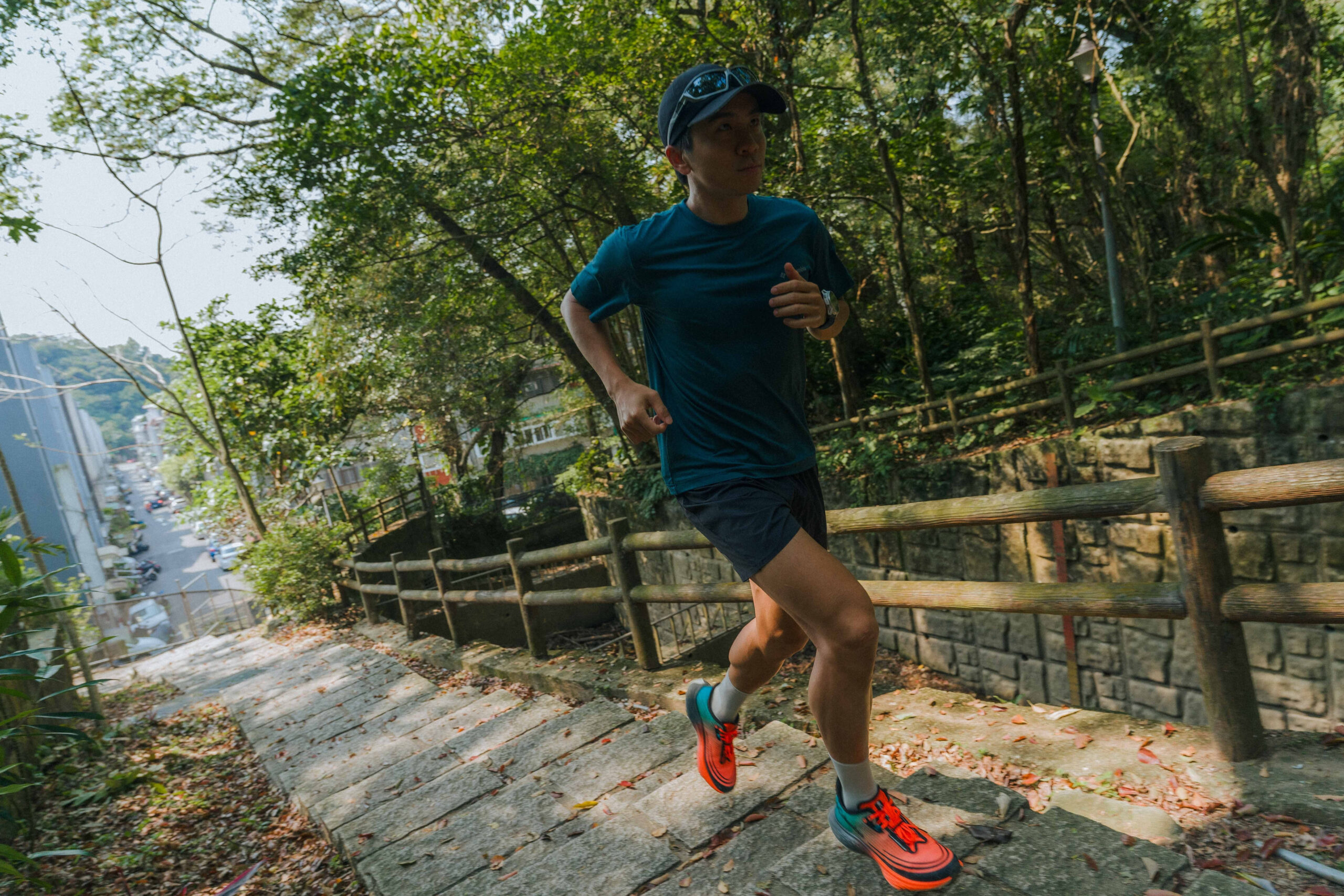 為了準備 4 月的 Mt.Fuji 而規劃出的訓練路線,就路線性質來說推測會滿符合這雙鞋的「個性」。面對緩上下坡,跑動的帶動感很順。特別是在階梯與陡上路段,Omni-Max(TM) 系統的後跟緩震區設計,讓受力點分布得很平均,減少了足弓的疲勞感。 到了後段雙腿較疲乏的狀態,鞋身輕量優勢讓收腿更不拖沓,有效降低被障礙物絆倒的風險。