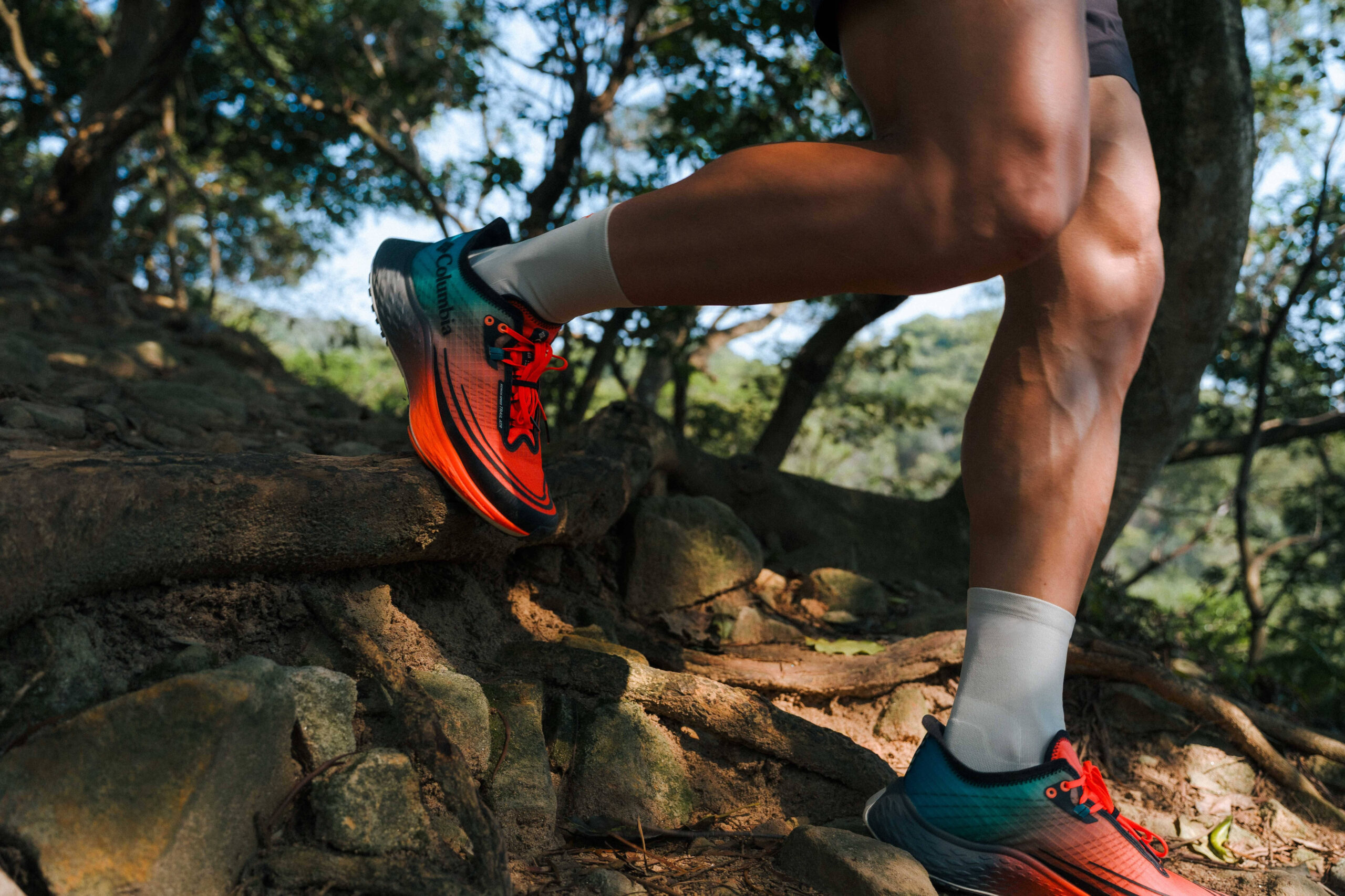TechLite(TM) Ultra 真不愧是 Columbia 最輕的中底科技,上坡路段跑動很能感受到輕盈回彈兼具。這種回彈感並非無底洞的軟塌,而是一種帶有韌性的「推動力」,能量反饋非常直接。搭配上 Omni-Max(TM) 全方位足底緩震穩定系統,它巧妙地在腳掌落地時提供了一種類似「導軌」的支撐感,不管是人工鋪設路面或天然土徑,都能感受安穩落地後的回彈。中底可說是最能代表一雙鞋的個性,在初次的訓練我就感受到這雙鞋給我的穩健能量。