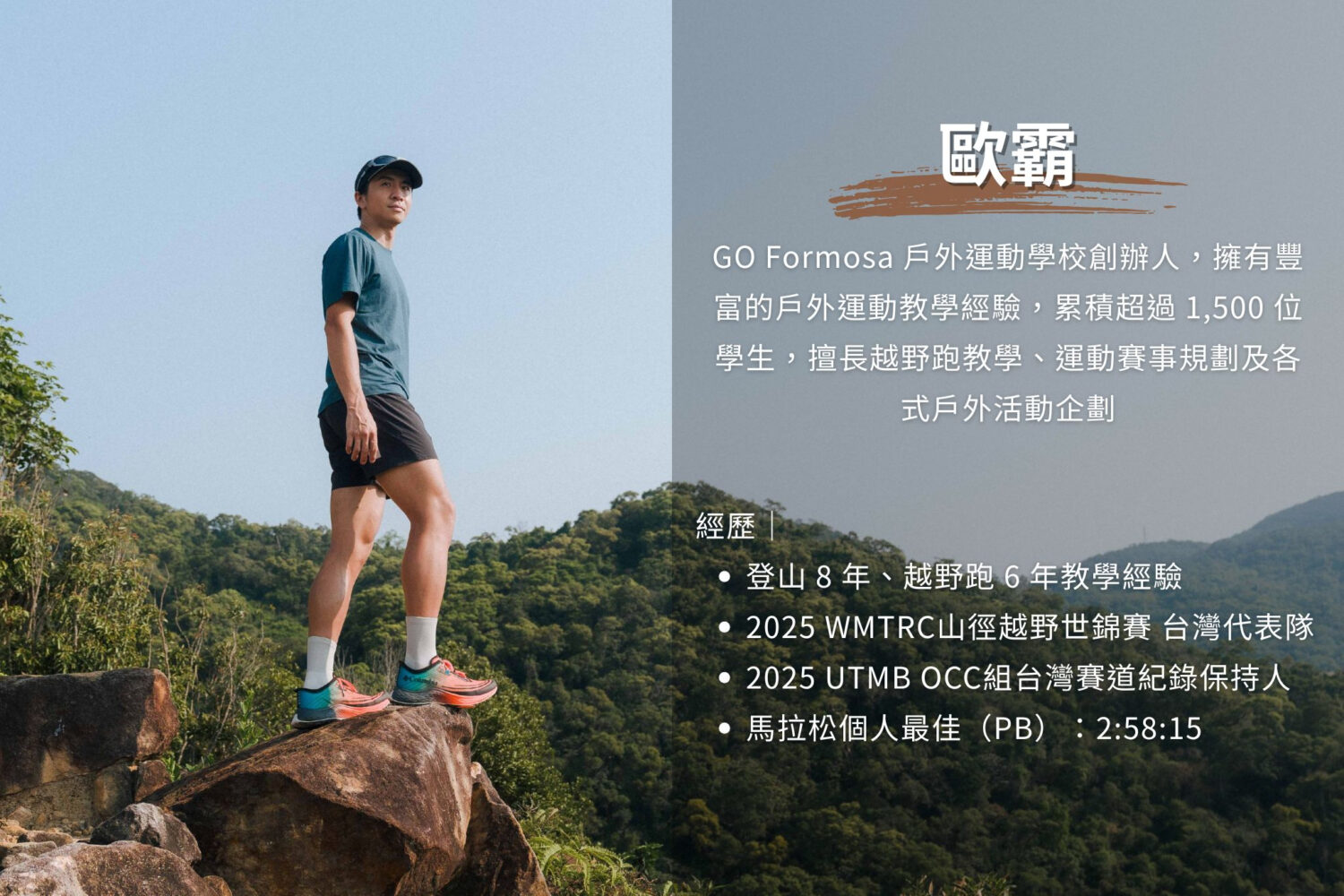 身為越野跑教練、越野跑選手、同時也是戶外運動學校的創辦人,多重身份讓我很頻繁地上山探索這個世界。在大自然跑動不僅僅是訓練,更像是一個了解自我的動態冥想時間,並且也能結緣許多相同熱愛山林的好友。